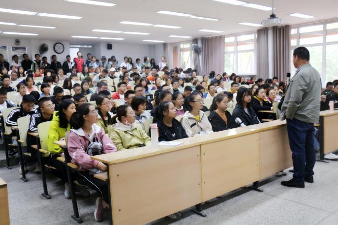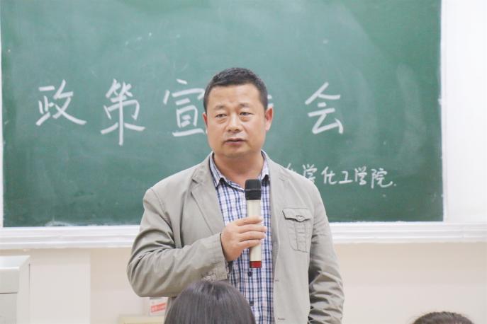 党委副书记桂晓兵为同学们做政策宣讲,2019级全体同学参与听讲。