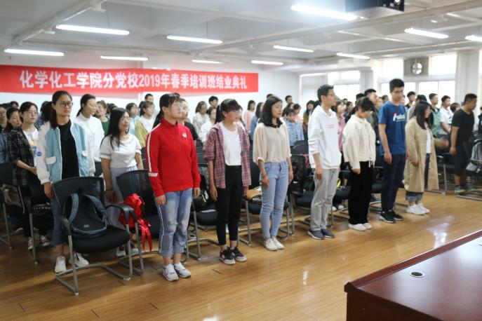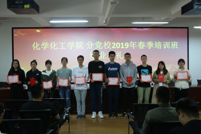 分党校2019年春季培训班结业典礼暨青马班结业典礼在知化楼115报告厅顺利举行,学院党委副书记桂晓兵老师,学生工作办公室主任王艳梅老师,辅导员马丽蓉老师出席结业典礼,典礼由兼职辅导员付影影主持,全体入党积极分子、发展对象以及青马班学员参加此次结业典礼。