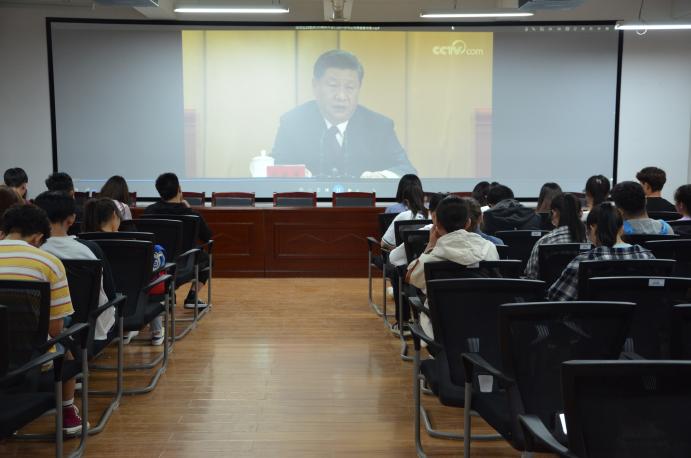 2018级部分团员在学院组织下于知化楼115报告厅观看纪念五四运动一百周年大会,反响强烈。
