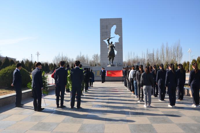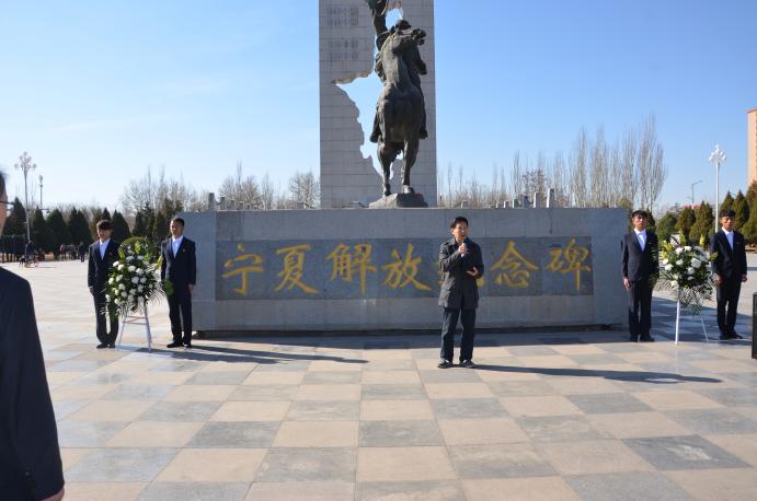 上午9时半,在场师生齐唱国歌后,向解放纪念碑敬献花篮,为宁夏解放事业英勇献身的烈士们默哀致敬,以此表达对革命先烈的深切缅怀和崇高敬意。