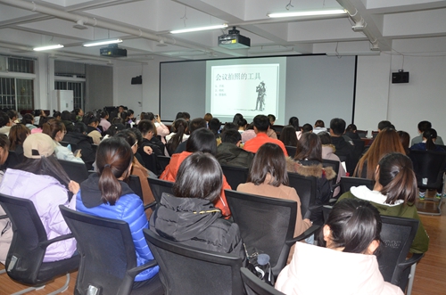 磨刀不误砍柴工,想要拍出好的照片,对相机的了解必不可少。讲座中,主讲人向大家普及了相机几个常用档位的使用方法以及拍照前的准备工作。他强调,作为一个媒体人,不能怕麻烦,怕辛苦,要有吃苦耐劳的精神。随后,他用简洁的语言、清晰的思路分别就会议类、活动类、颁奖类三类拍摄场合一一介绍,并紧密结合拍摄案例针对性讲解,点出了拍摄的误区和注意事项,参与讲座的全体成员认真听讲并做笔记,纷纷表示受益匪浅。