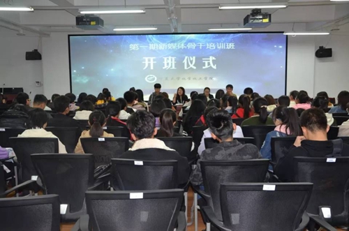 开班仪式上,马丽蓉老师致辞,她为在场学员指出了高校宣传工作的重要性和此次培训的必要性和迫切性。她强调,高校宣传工作是沟通学校和社会的桥梁,新时期用好新媒体是我们当前必须要面临的学习任务。她向学院宣传工作骨干提出以下几点要求:第一,要坚定政治信念,掌握理论基础;第二,做到业务过硬,实事求是;第三,做事勤快,及时发布最新消息。她希望同学们能够充分调动积极性,做好学院的宣传工作,传播学院好故事,弘扬青春正能量。知化通讯社社长田艳芳介绍了此次培训的主要内容和培训要求,本次培训将围绕新闻稿撰写、新闻图片摄影、视频编辑PS、微信运营四个模块集中开展,培训结束后,将根据每组成果展示情况及学习出勤情况,评选出若干名优秀学员并颁发证书。知化通讯社2018级干事董飞龙代表本次培训班学员做了发言,她向大家讲述了自己进入知化通讯社以来的心理路程和工作感想,并呼吁在场学员端正态度,认真学习,珍惜这次集中学习的机会。