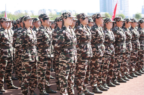 每天清晨,伴着清亮的口哨声,同学们身着迷彩服,整齐地列队跑步。紧接着,繁重的军训内容铺展开来。站军姿、踢正步、敬军礼是军训的基础。同样的动作,重复了一遍又一遍,教官们也极有耐心地纠正着各种错误。尽管训练很苦,但大家的内心是充实的,因为军训是在考验他们的意志,锻炼他们的体魄。