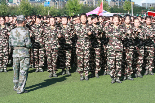 在这个爽朗的清晨,宁大c区的操场上,一群着装整齐、朝气蓬勃的新生已列队。伴着清晨第一缕阳光,一声嘹亮浑厚的口号响起,新一天的军训开始了。队伍里开始出现阵阵波动,随后又恢复平静。太阳缓缓升起,训练有序地进行着。长时间的军姿,让部分同学感到不适应,身体微微摇晃。 “不要动!谁让你动了!再延长10分钟。”教官严厉地要求着每一位同学,培养大家勇敢顽强的作风和严格的组织纪律观念。