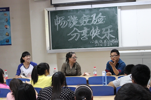 最后刘晶晶学姐做了总结发言,她向我们提出了几点建议,并由衷的期望同学们能充实的度过自己的大学生活。活动结束后12级化学分析班的同学们以热烈的掌声表达了他们的谢意。希望学长、学姐们的经验能给他们一些指引,以经验为马,以汗为泉,携手并进。