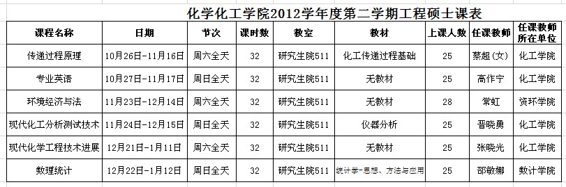 2013级在职研究生课程安排