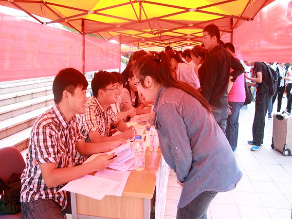 7号早上8点,在院党委副书记王彦庚老师周密部署下,各年级辅导员老师、学生会干部和班级志愿者迅速投入紧张的迎新工作。志愿者同学主动请缨并按照学院的具体安排,分工负责,兵分三路,迎新工作有条不紊的展开。一部分志愿者到设在北校区大学生活动中心门口的新生接待处,负责接待登记工作。他们热情地从家长和新生手中接过行李物品,带领新生办理入学手续并引导他们去宿舍管理处办理入住登记,同时还指引新生、家长去食堂就餐休息;一部分志愿者负责仔细审核新生录取通知书等重要材料,并向新生仔细讲解需要注意的细节;一部分志愿者负责外围工作,去北校门口引领新生完成报到的所有程序。