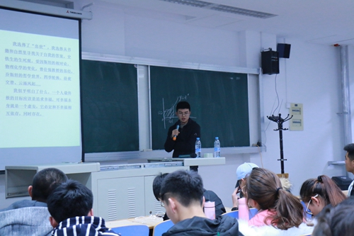 以“感恩励志成才”为主题的报告会于11月29日在文萃一教421室顺利开展。此次报告会邀请了2015级优秀学生代表张聪和周政做主讲人,2018级全体本科生参与听讲。