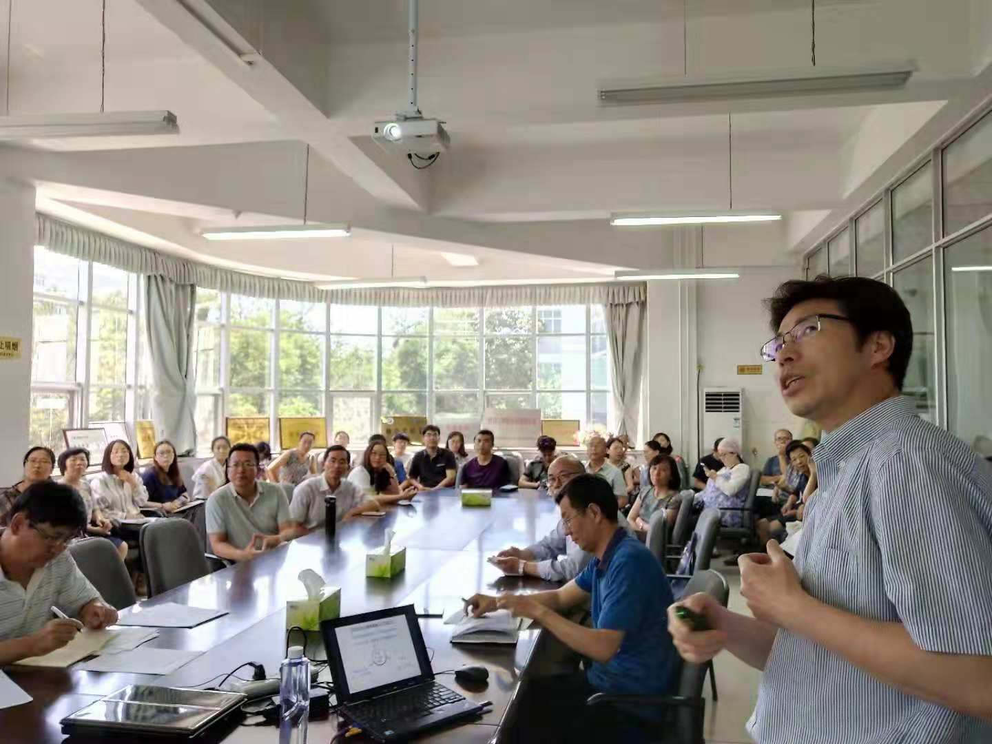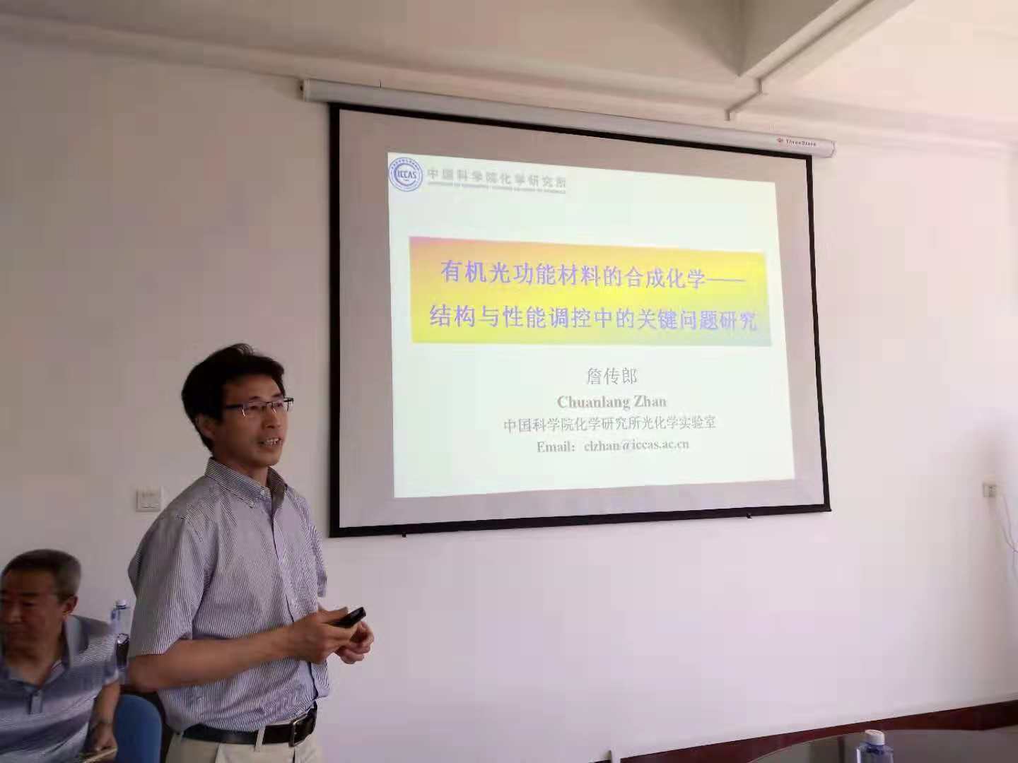 2018年7月11日,为促进拷贝漫画 一流学科的发展与“化学”硕士学位点的建设,学院邀请中国科学院化学所詹传郎教授来拷贝漫画 进行学术交流。双方就学院“化学”学科的发展进行交流,詹教授对拷贝漫画 “化学”学位点的自评估工作提出了一些很好的建议。当天下午,詹教授还为学院全体研究生导师做了一场“有机光功能材料的合成化学——结构与性能调控中的关键问题研究”学术报告。