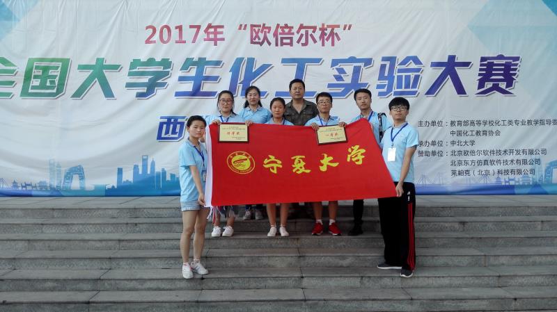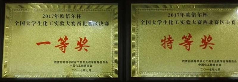 2014级化学工程与工艺专业本科生姚建琪、于冰洁、张丽组成的“天语队”和吕杨、何嘉、冯燕茹组成的“宁竞志远队”经过刻苦学习与训练,在比赛中努力拼搏取得优异成绩,“天语队”获得特等奖,“宁竞志远队”获得一等奖。“天语队”将作为西北赛区代表队之一参加8月13日在天津大学举行的全国化工实验大赛总决赛。