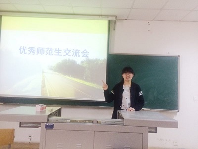 本次交流会三位优秀师范生从各自的大学生活学习经验入手,分别讲述了班级管理经验、专业竞赛风采及保研考研事宜。马雯丽作为2013级化学(师范)专业的班长,她从如何做好班长、如何团结同学、如何提高凝聚力等角度,分享了自己作为班长的心得体会,并提醒班级中的每一位成员,个人的成长离不开的团队的支持,团结就是力量;赵宁宁是化学教学技能大赛中的特等奖获得者,她从撰写教学设计、实训教学技能、完善教学过程、参与教学技能大赛等方面,将自己从无到有的经历进行了讲述,并倡议化学师范生积极参与到化学教育教学活动中,提高自己综合能力;张晶已被拷贝漫画
