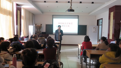 副院长倪刚、教科办主任林枫、教师教育学科负责人吴晓红教授、八位师范专业实习指导老师及2013、2014级全体化学师范生。