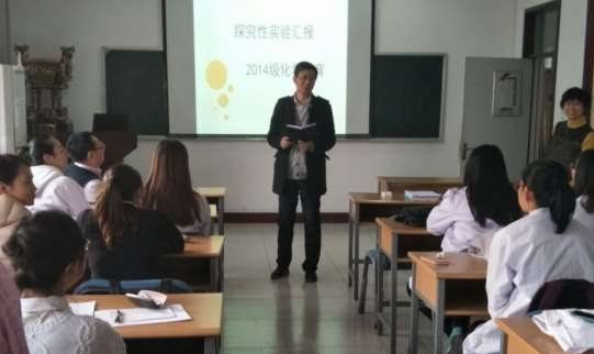 本次汇报是由2014级化学(教育)专业的学生经过近一学期准备后的成果,全班30名学生都参与了实验探究过程。他们分为十个小组,每个组选择一个中学化学实验进行探究性的创新,经过查阅资料、相互讨论、请教老师、不断试验终于完成了实验探究学习任务。